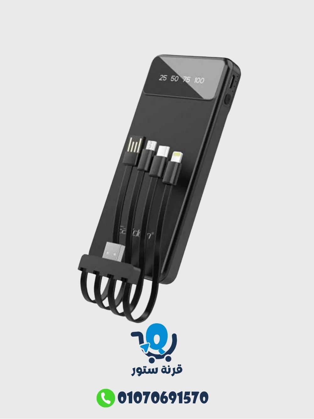 السعة الكبيرة: فيه بطارية 10000 مللي أمبير (mAh). يعني يقدر يشحن موبايلك (معظم الموبايلات) بتاع مرتين لثلاث مرات شحنة كاملة. مش هتشيل هم البطارية وهي بتفصل.